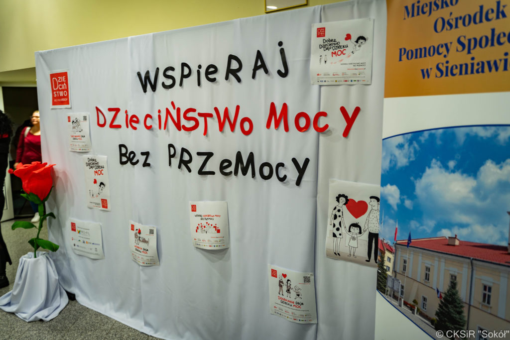 W dniu 17.11.2025 Centrum Kultury, Sportu i Rekreacji ,,Sokół” odbyło się spotkanie zorganizowane przez Miejsko – Gminny Ośrodek Pomocy Społecznej w Sieniawie przy współpracy z Samorządem Miasta i Gminy Sieniawa w ramach Ogólnopolskiej Kampanii „Dzieciństwo bez przemocy”.